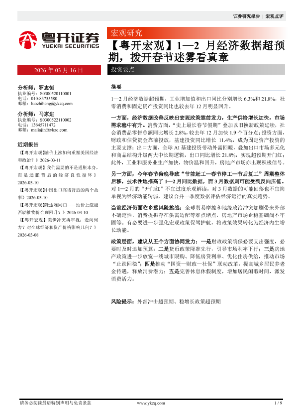 【粤开证券】【202603】【粤开宏观】1—2月经济数据超预期,拨开春节迷雾看真章-9页