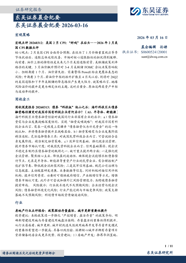 【东吴证券】【202603】东吴证券晨会纪要-11页