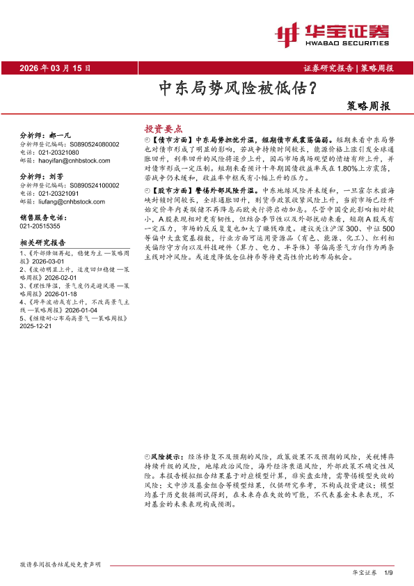债市分析 资产配置 中东局势 股市策略 地缘政治风险