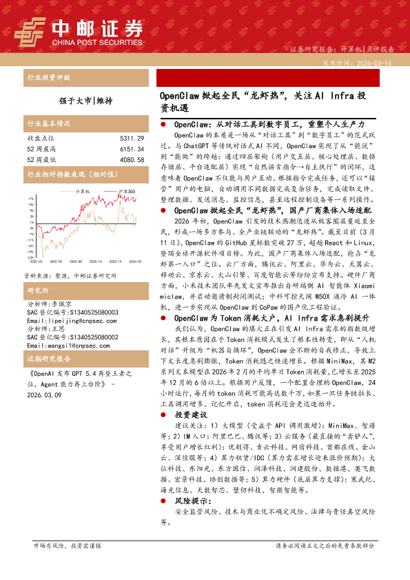 【中邮证券】【202603】OpenClaw掀起全民“龙虾热”,关注AI Infra投资机遇-3页