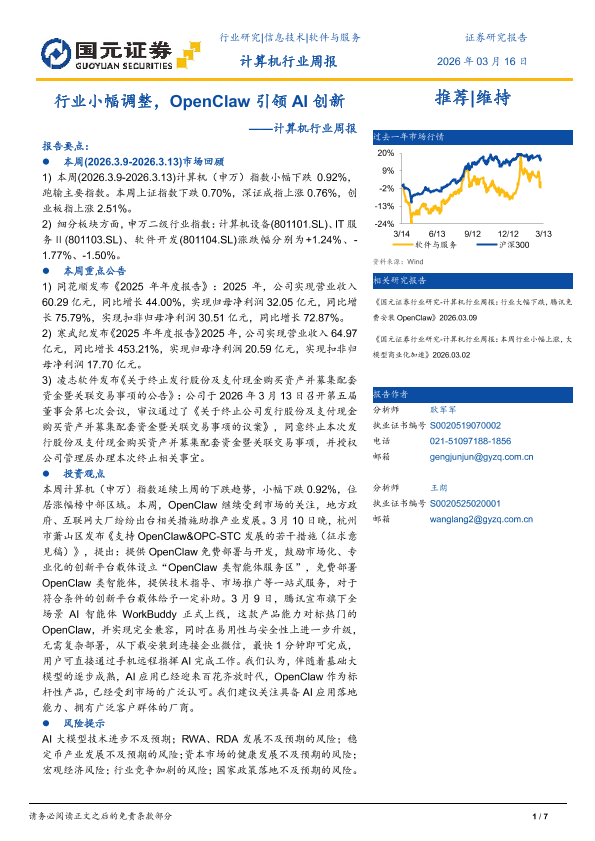 【国元证券】【202603】行业小幅调整,OpenClaw引领AI创新-7页