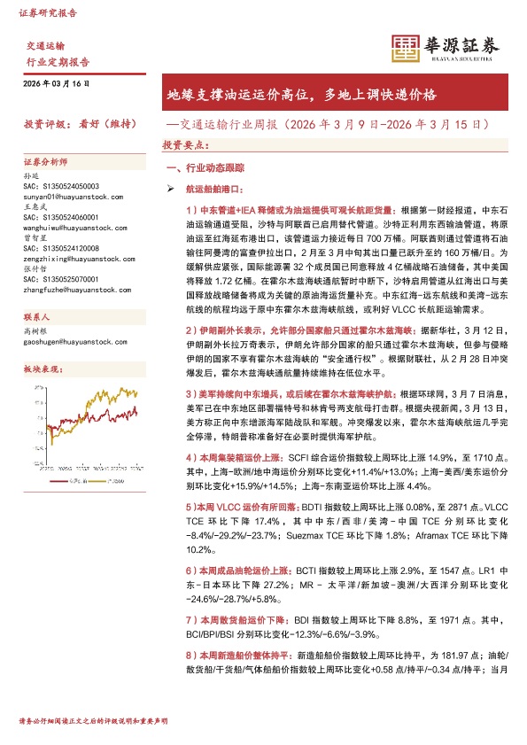 【华源证券】【202603】交通运输行业周报(2026年 3月 9日-2026年 3月 15日)-17页