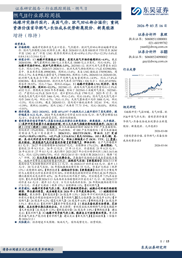 【东吴证券】【202603】燃气Ⅱ行业跟踪周报-15页