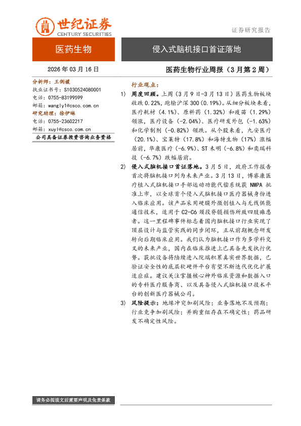 【世纪证券】【202603】医药生物行业周报(3月第2周)-8页