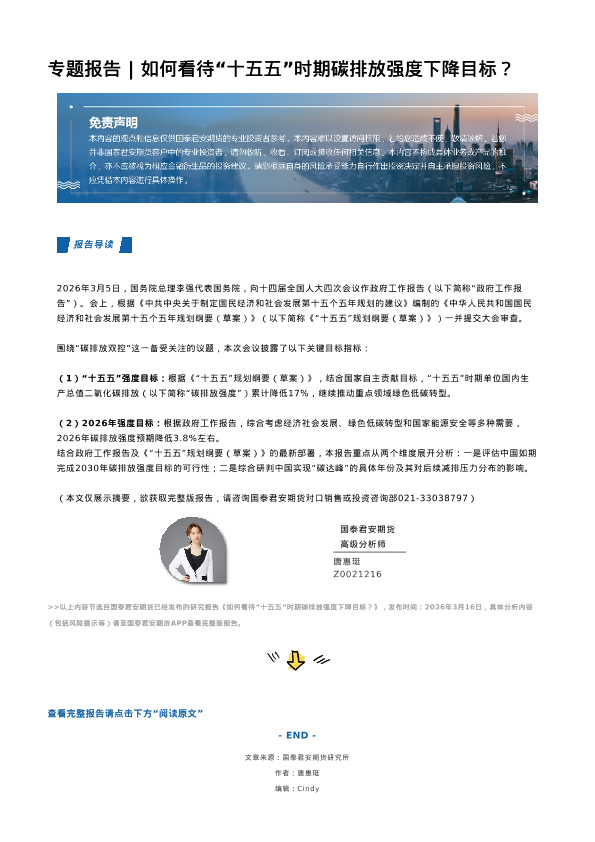 【国泰君安期货】【202603】如何看待“十五五”时期碳排放强度下降目标-2页