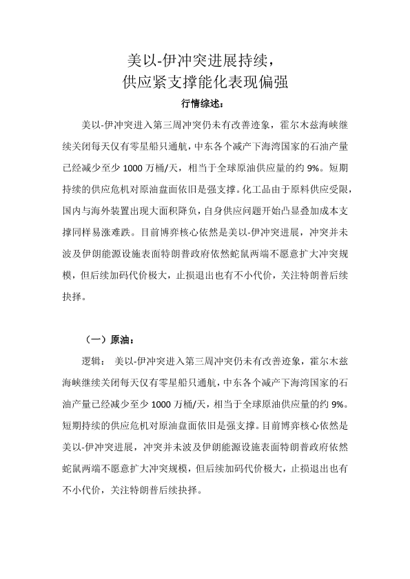 【天富期货有限公司】【202603】美以-伊冲突进展持续_供应紧支撑能化表现偏强-13页