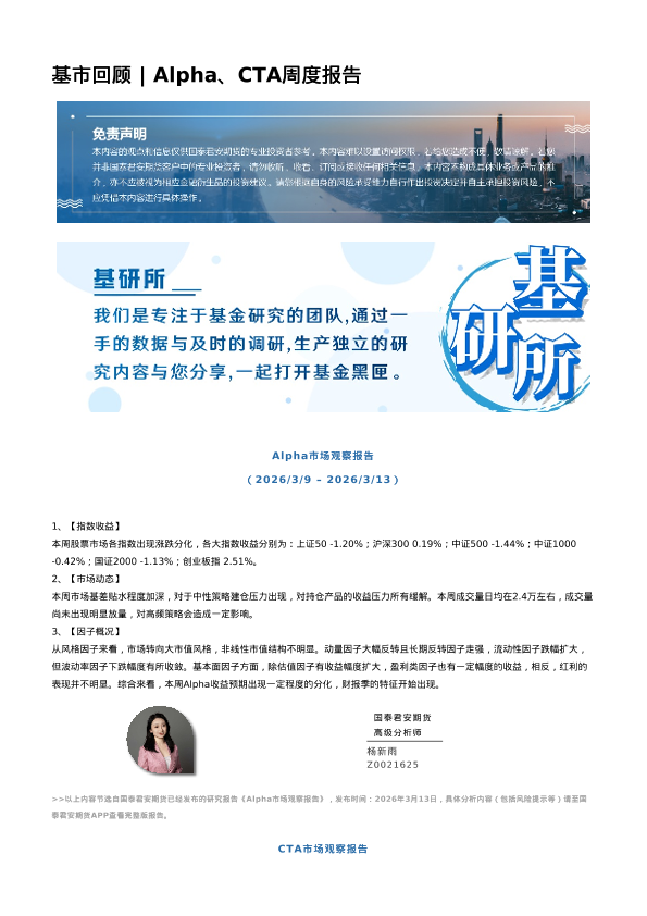 【国泰君安期货】【202603】基市回顾|Alpha、CTA周度报告-3页