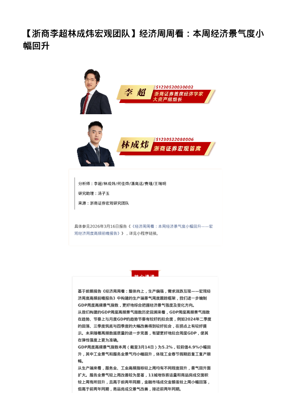 【浙商证券宏观研究团队】【202603】经济周周看:本周经济景气度小幅回升-4页