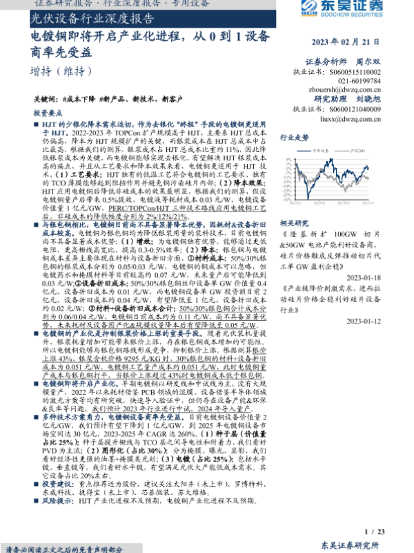 【东吴证券】【20230221】光伏设备行业深度报告:电镀铜即将开启产业化进程,从0到1设备商率先受益-23页