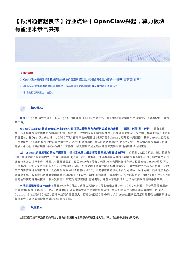 【银河证券】【202603】OpenClaw兴起,算力板块有望迎来景气共振-3页