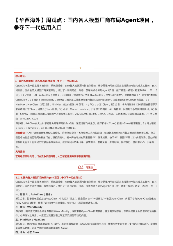 【华西证券】【202603】【华西海外】周观点:国内各大模型厂商布局Agent项目,争夺下一代应用入口-8页