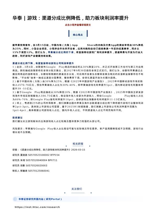 【华泰证券】【202603】游戏_渠道分成比例降低,助力板块利润率提升-2页