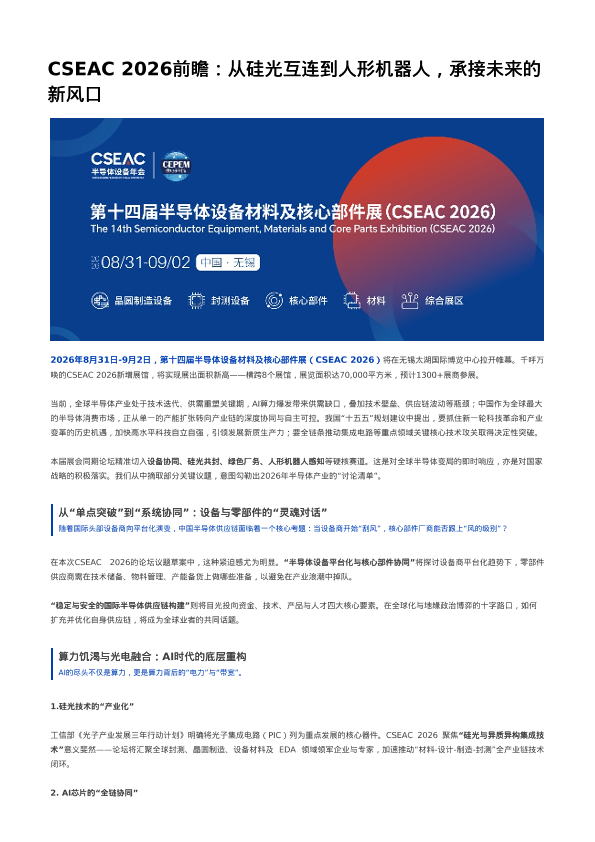 【上海风米云传媒科技】【202608】CSEAC2026前瞻:从硅光互连到人形机器人,承接未来的新风口-4页