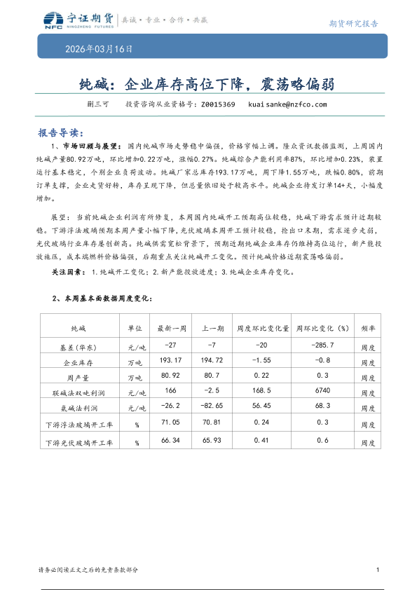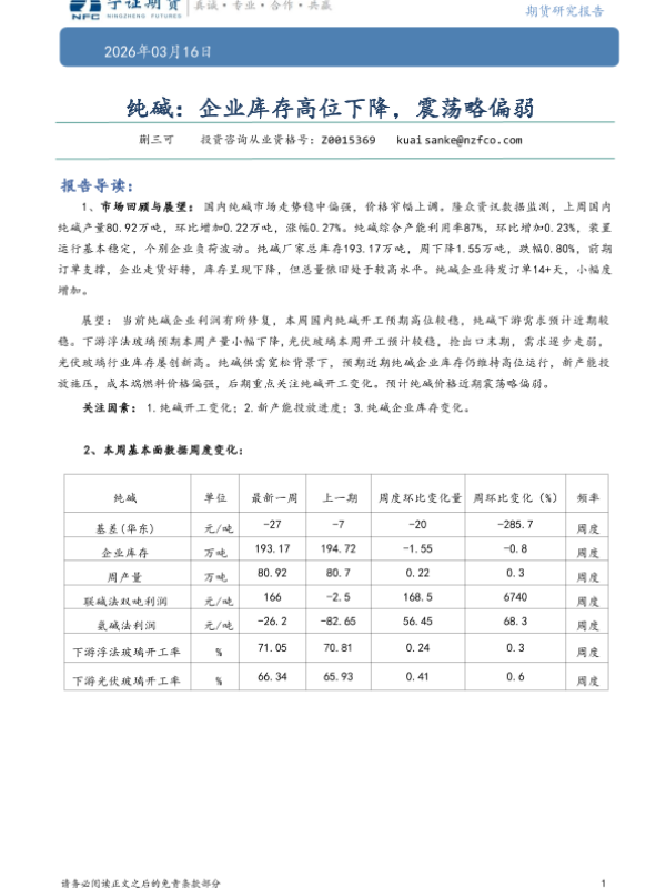 【宁证期货】【202603】纯碱:企业库存高位下降,震荡略偏弱-5页