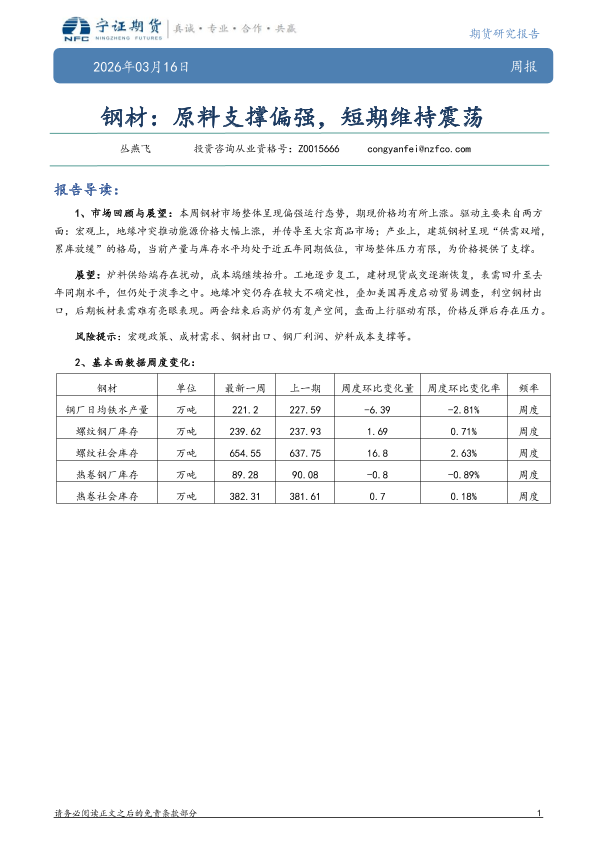 【宁证期货有限公司】【202603】钢材_原料支撑偏强_短期维持震荡-5页