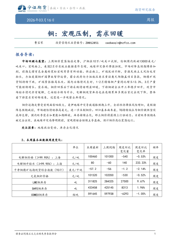 【宁证期货】【202603】铜:宏观压制,需求回暖-6页