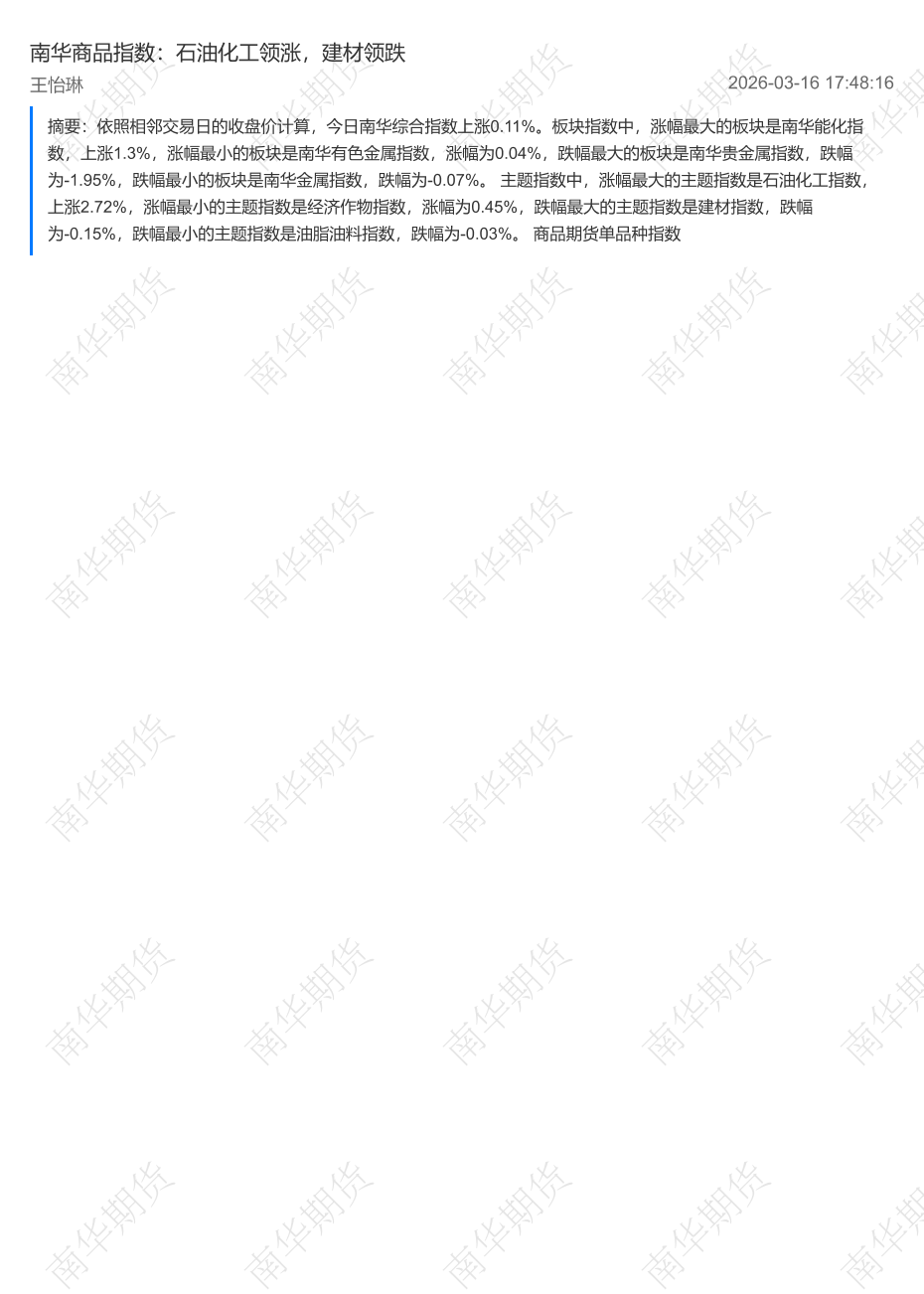 【南华期货】【202603】南华商品指数:石油化工领涨,建材领跌-2页
