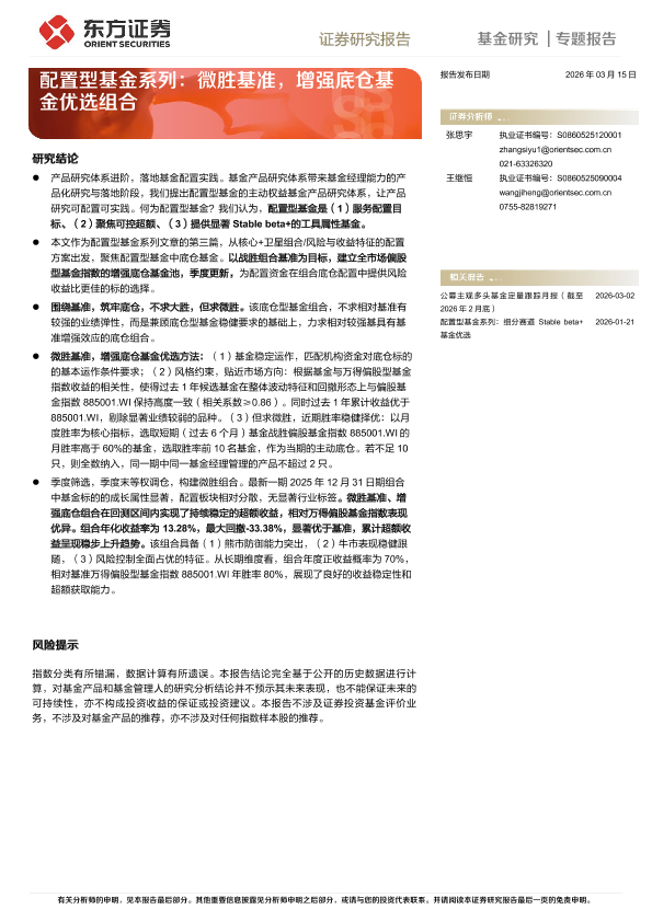 【东方证券】【202603】配置型基金系列:微胜基准,增强底仓基金优选组合-13页