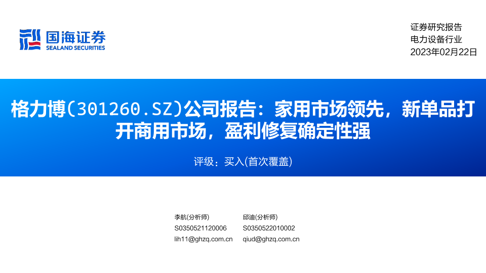 【国海证券】【20230222】家用市场领先,新单品打开商用市场,盈利修复确定性强-34页