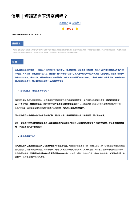 【财通证券】【202603】信用|短端还有下沉空间吗?-17页