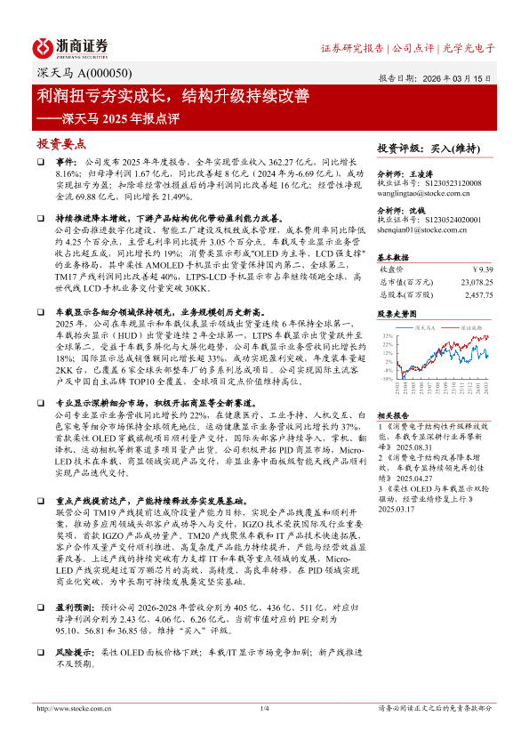 【浙商证券】【202603】深天马2025年报点评_利润扭亏夯实成长_结构升级持续改善-4页