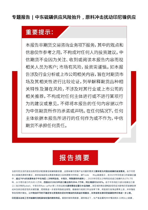 【中信期货】【202603】中东硫磺供应风险抬升,原料冲击扰动印尼镍供应-4页