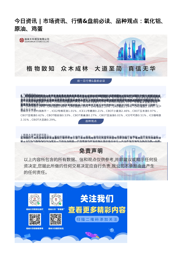 【格林大华期货研究院】【202403】今日资讯___市场资讯、行情&盘前必读、品种观点_氧化铝、原油、鸡蛋-2页