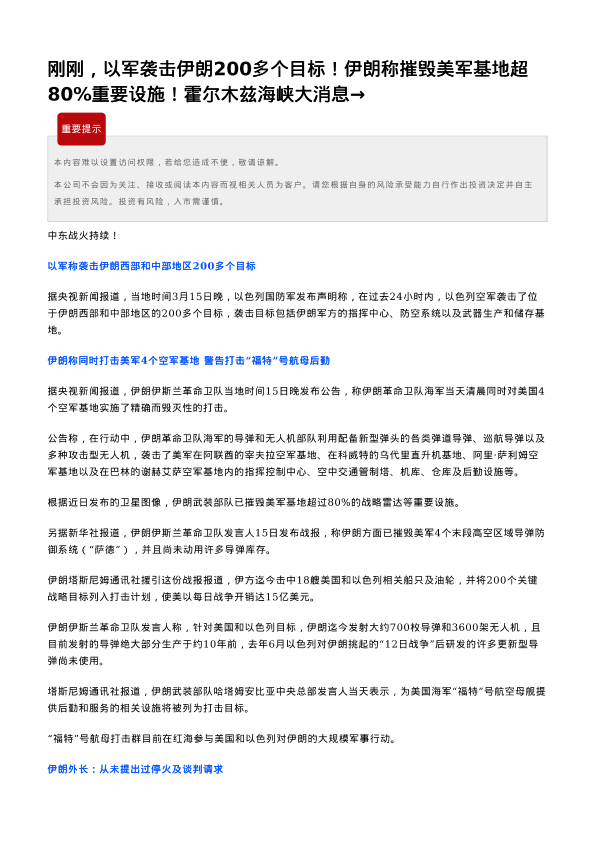 【瑞达期货】【202403】刚刚,以军袭击伊朗200多个目标!伊朗称摧毁美军基地超80%重要设施!霍尔木兹海峡大消息→-4页