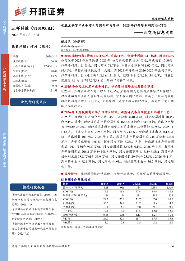【开源证券】【202603】北交所信息更新:受益主机客户业务增长与国外市场开拓,2025年归母净利润同比+72%-4页
