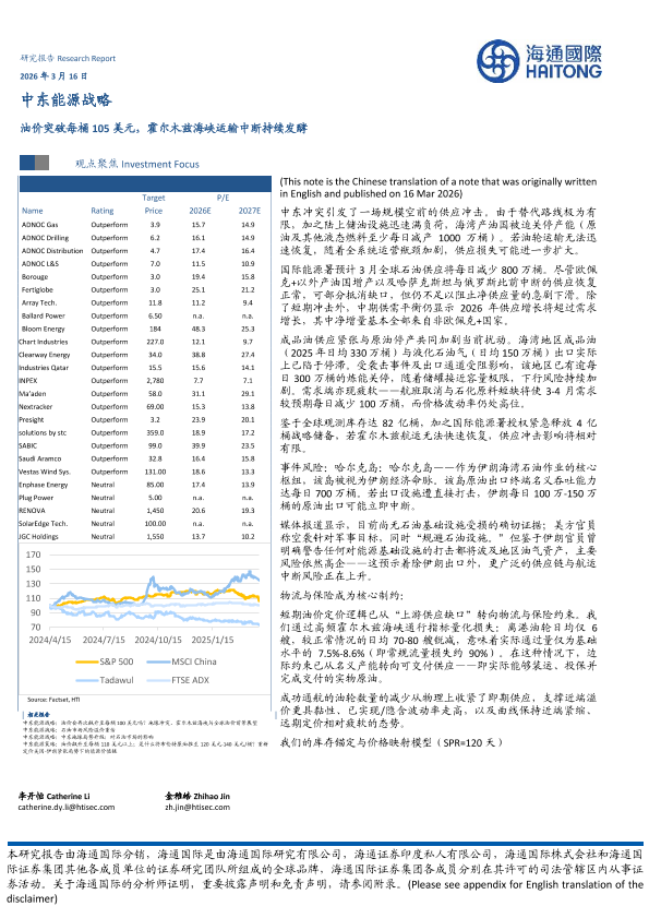 【海通国际】【202603】中东能源战略:油价突破每桶105美元,霍尔木兹海峡运输中断持续发酵-15页