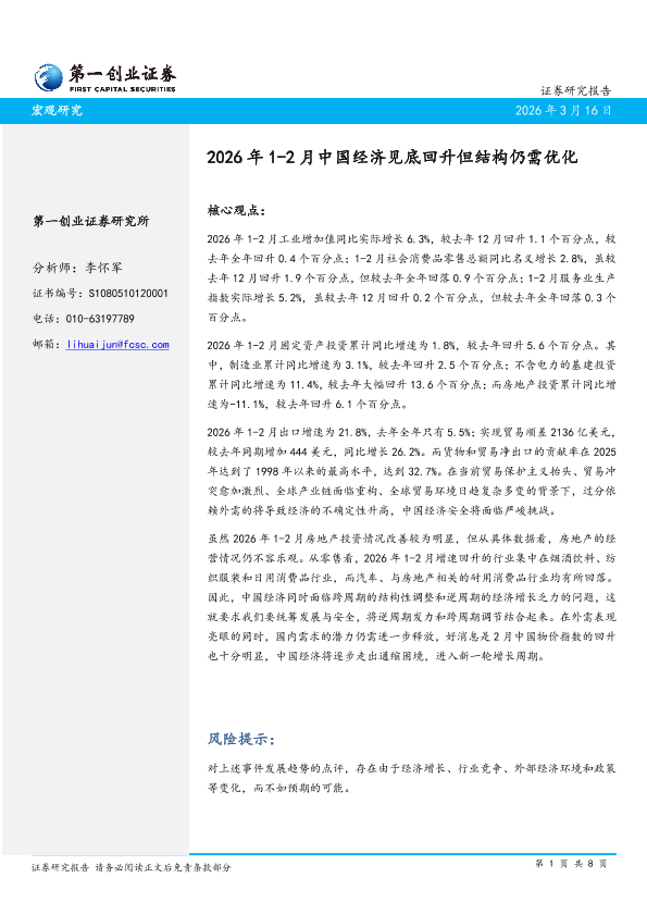 【第一创业证券】【202603】2026年1-2月中国经济见底回升但结构仍需优化-8页
