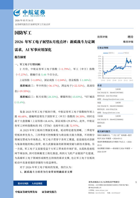 【中航证券】【202603】2026年军工电子展望&月度点评:新质战斗力定调需求,AI军事应用深化-16页