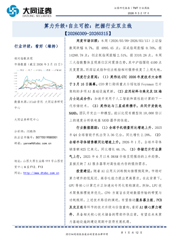 【大同证券研究中心】【202603】算力升级+自主可控:把握行业双主线-12页