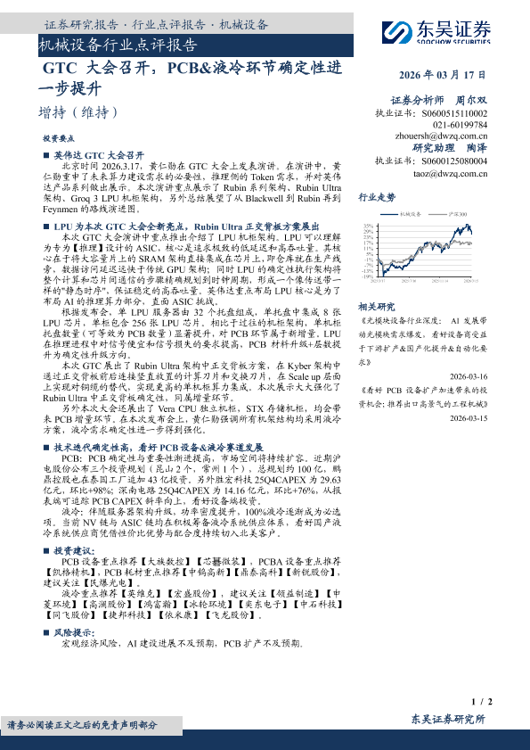 【东吴证券】【202603】GTC大会召开,PCB&液冷环节确定性进一步提升-2页