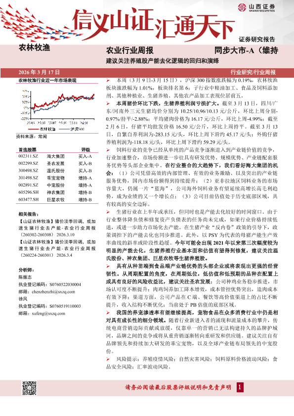 【山西证券】【202603】农业行业周报-20页