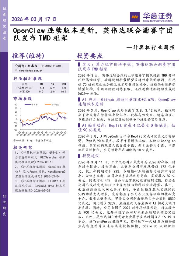 【华鑫证券】【202603】2026年 03月 17日 OpenC law连续版本更新,英伟达联合谢赛宁团队发布 TMD框架-18页