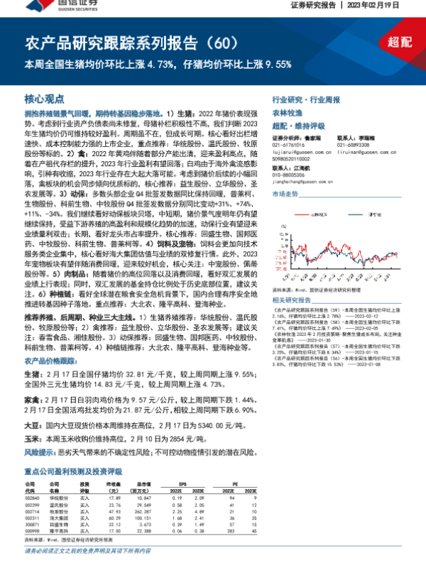 【国信证券】【20230219】农产品研究跟踪系列报告(60):本周全国生猪均价环比上涨4.73%,仔猪均价环比上涨9.55%-21页