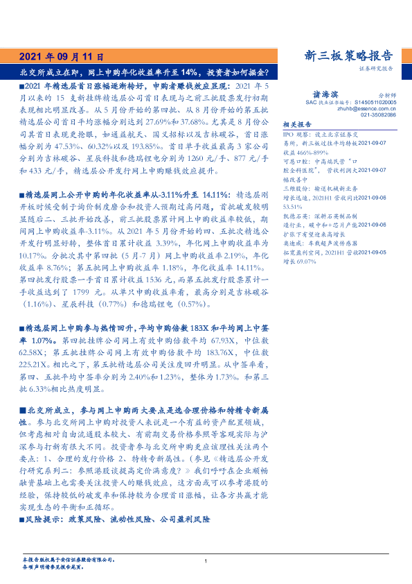 【安信证券】【20210911】北交所成立在即,网上申购年化收益率升至 14%,投资者如何掘金?-19页