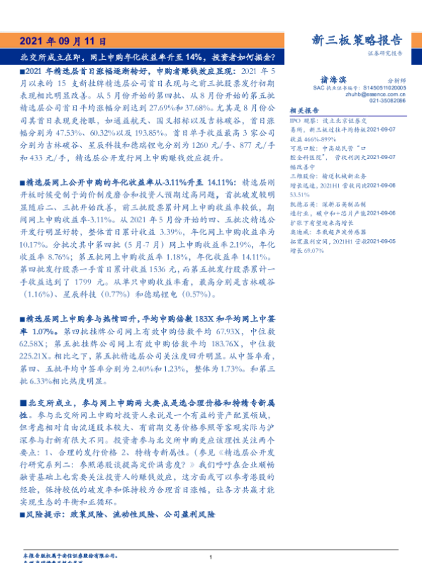 年化收益率 投资策略 新三板 网上申购 北交所