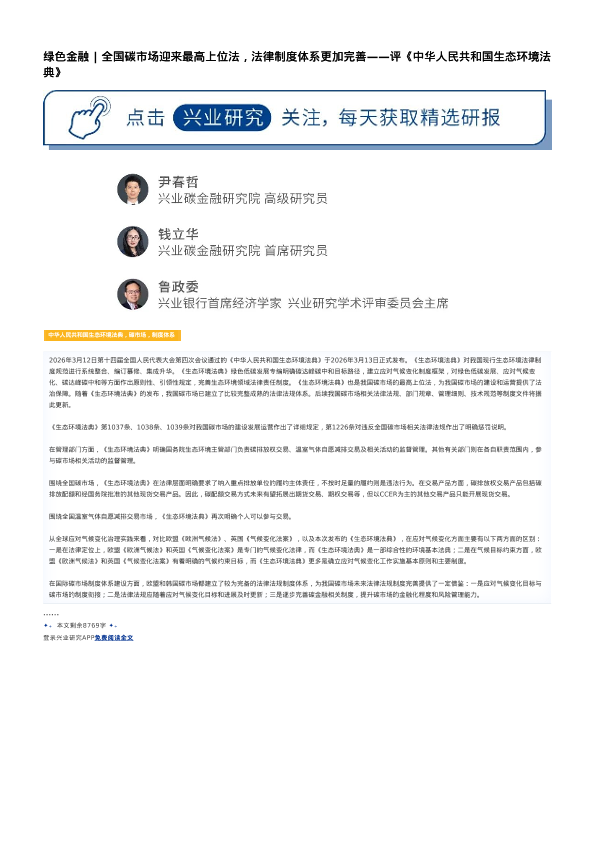 【兴业研究】【202603】全国碳市场迎来最高上位法,法律制度体系更加完善——评《中华人民共和国生态环境法典》-4页
