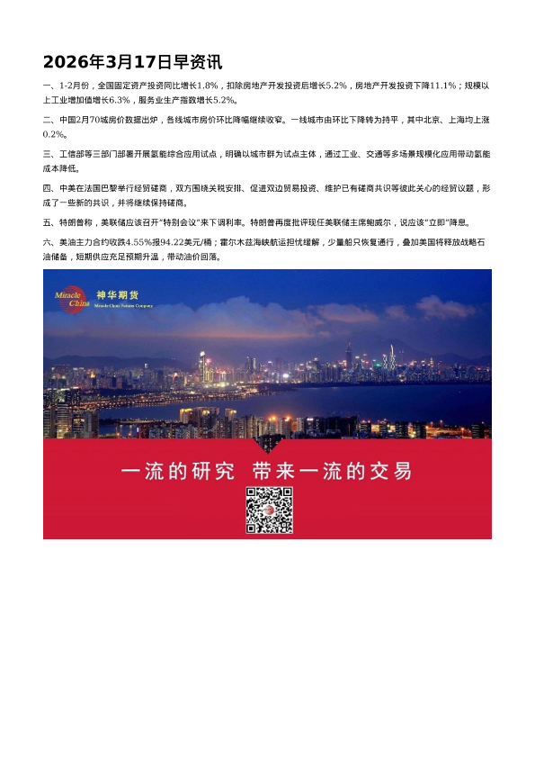 【神华期货】【202603】2026年3月17日早资讯-1页