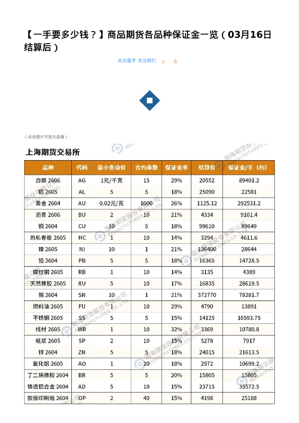 【渤海期货】【202403】一手要多少钱?商品期货各品种保证金一览(03月16日结算后)-4页