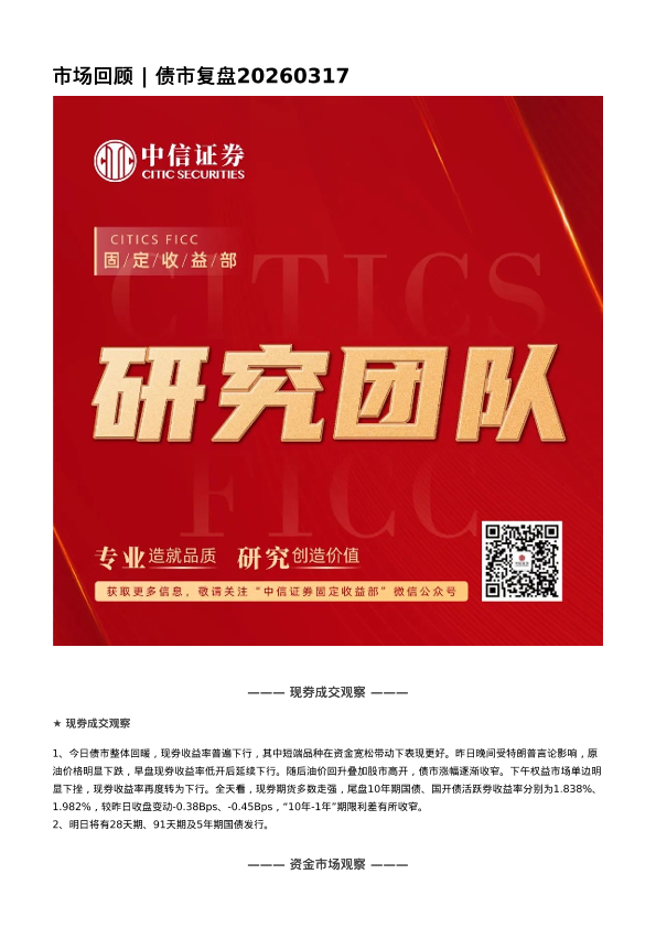 资金市场 债市复盘 期限利差 收益率 现券成交