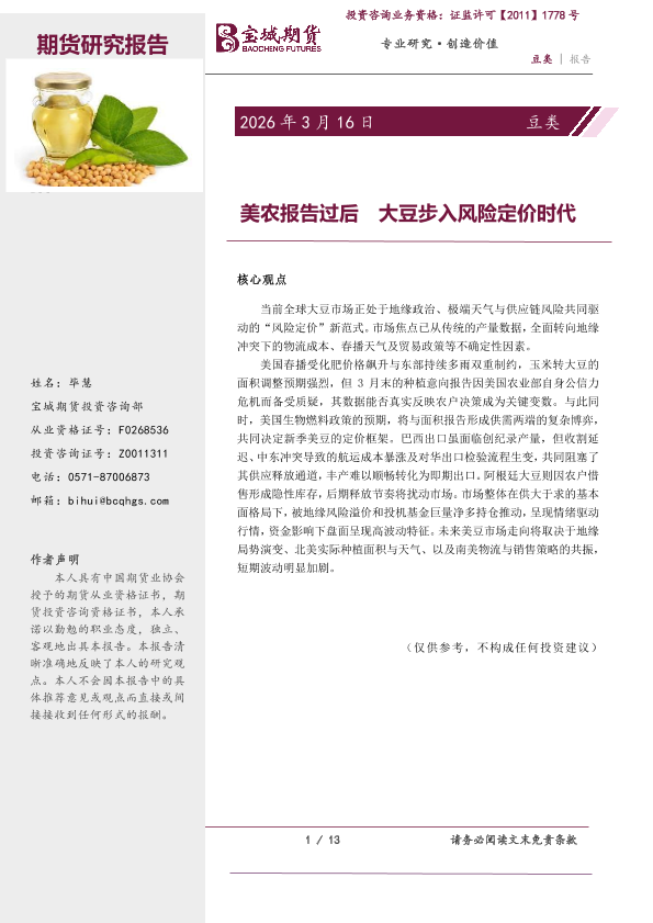 【宝城期货投资咨询部】【202603】美农报告过后 大豆步入风险定价时代-13页