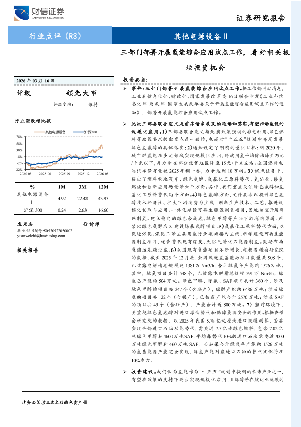 【财信证券】【202603】其他电源设备Ⅱ行业点评(R3)_三部门部署开展氢能综合应用试点工作_看好相关板块投资机会-3页