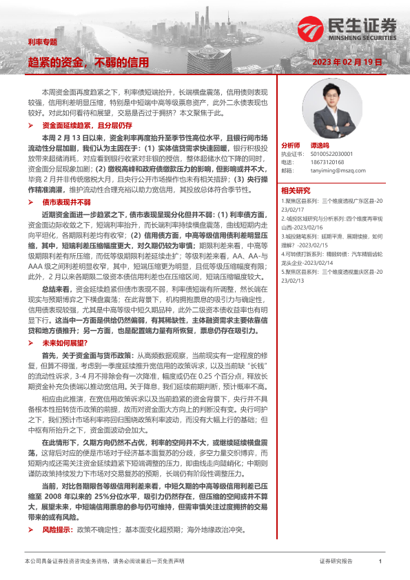 【民生证券】【20230219】利率专题:趋紧的资金,不弱的信用-18页