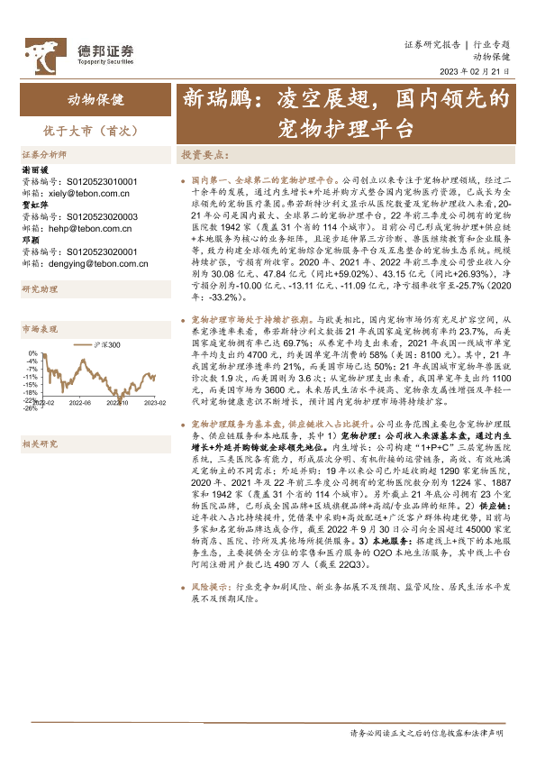 【德邦证券】【20230221】动物保健行业专题:新瑞鹏,凌空展翅,国内领先的宠物护理平台-17页