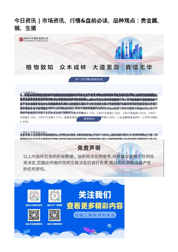 【格林大华期货研究院】【202403】今日资讯___市场资讯、行情&盘前必读、品种观点_贵金属、铜、生猪-2页