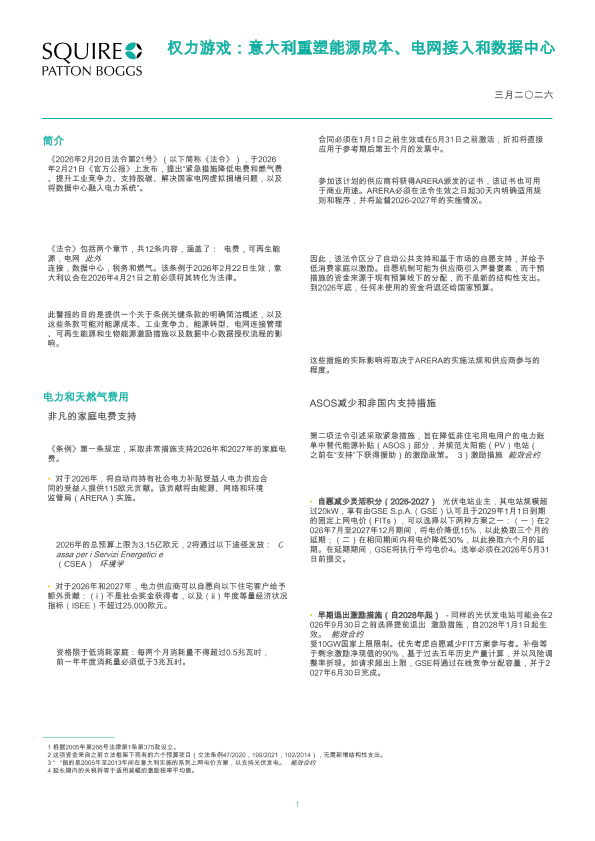 【PATTON BOGGS】【202603】权力游戏:意大利重塑能源成本、电网接入和数据中心-6页