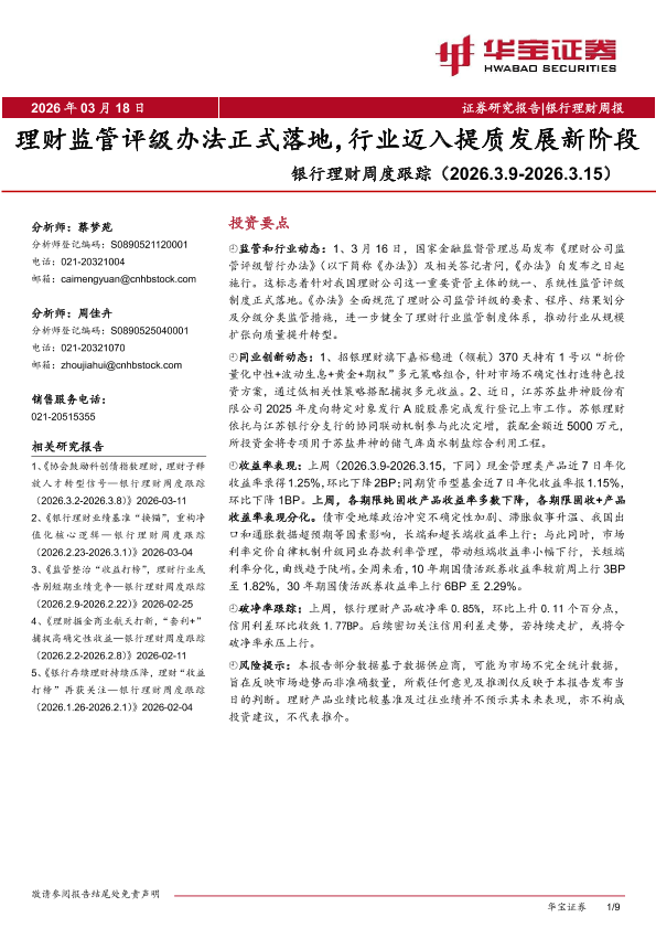 【华宝证券】【202603】理财监管评级办法正式落地,行业迈入提质发展新阶段-9页
